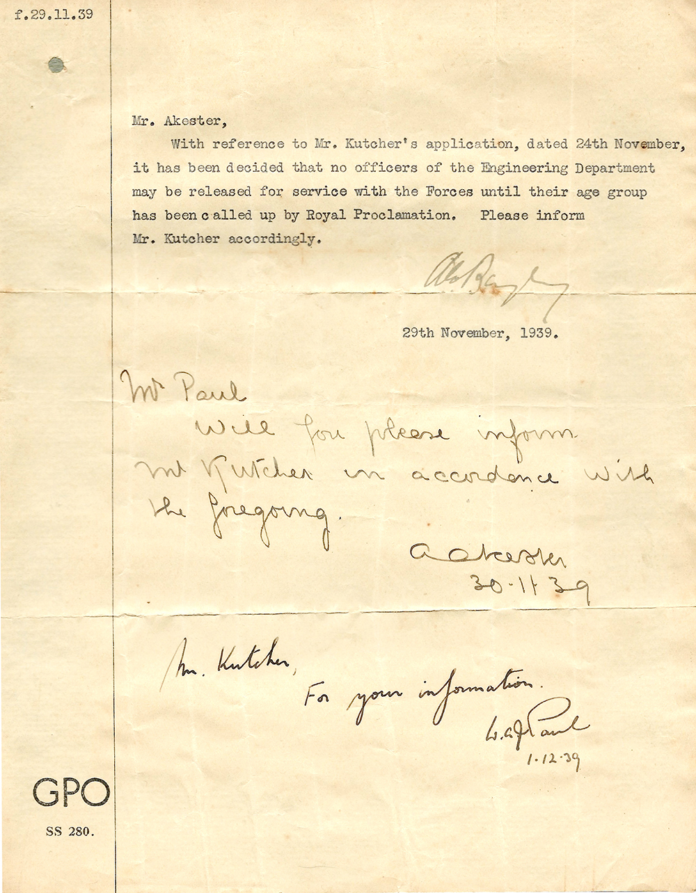 1940 Right: Grading card for men being physically examined for fitness for national service in the British armed forces.