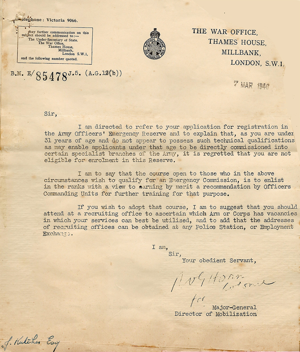 1939 to 1940 Jack tries several times to enlist in the armed forces