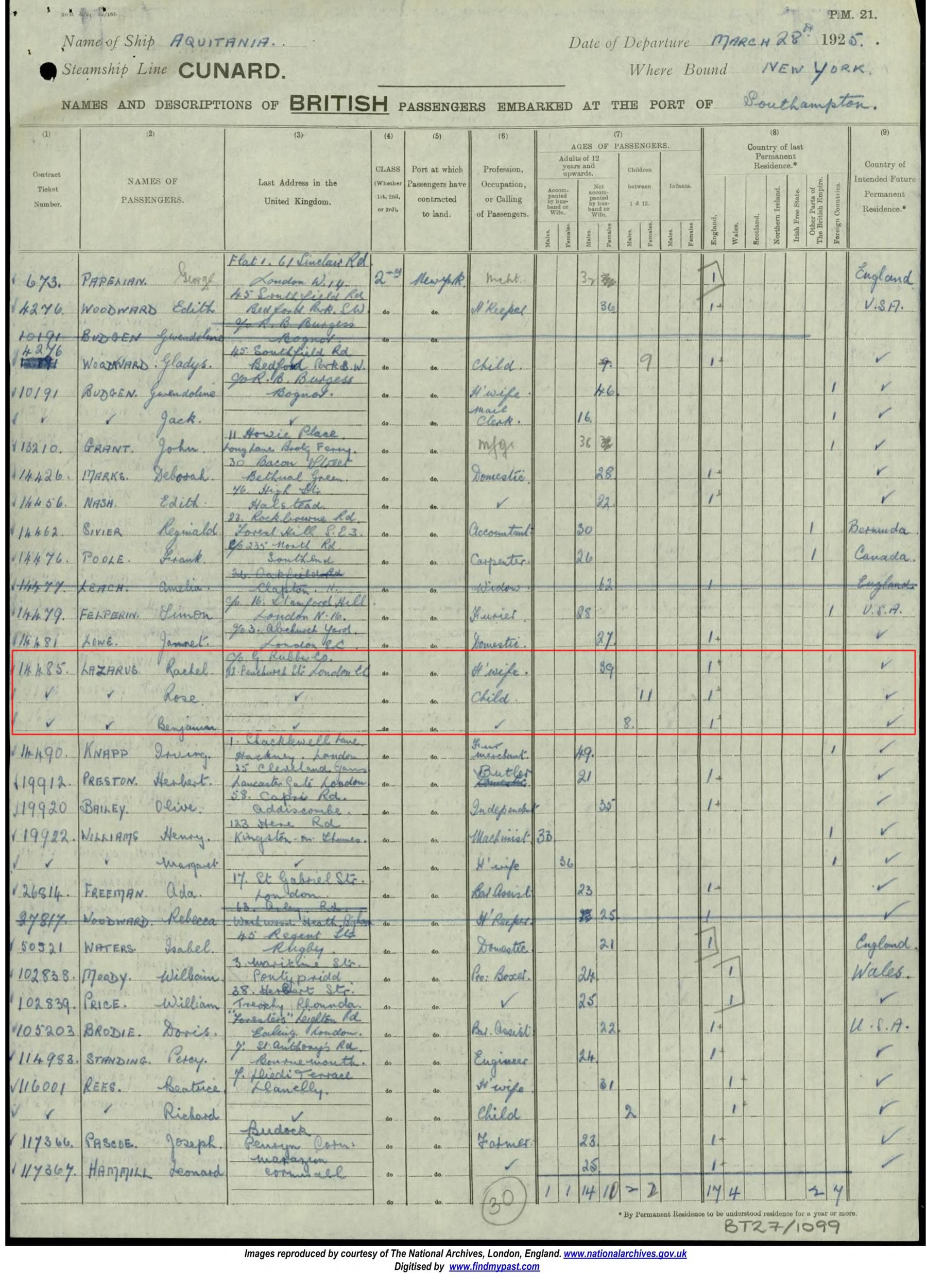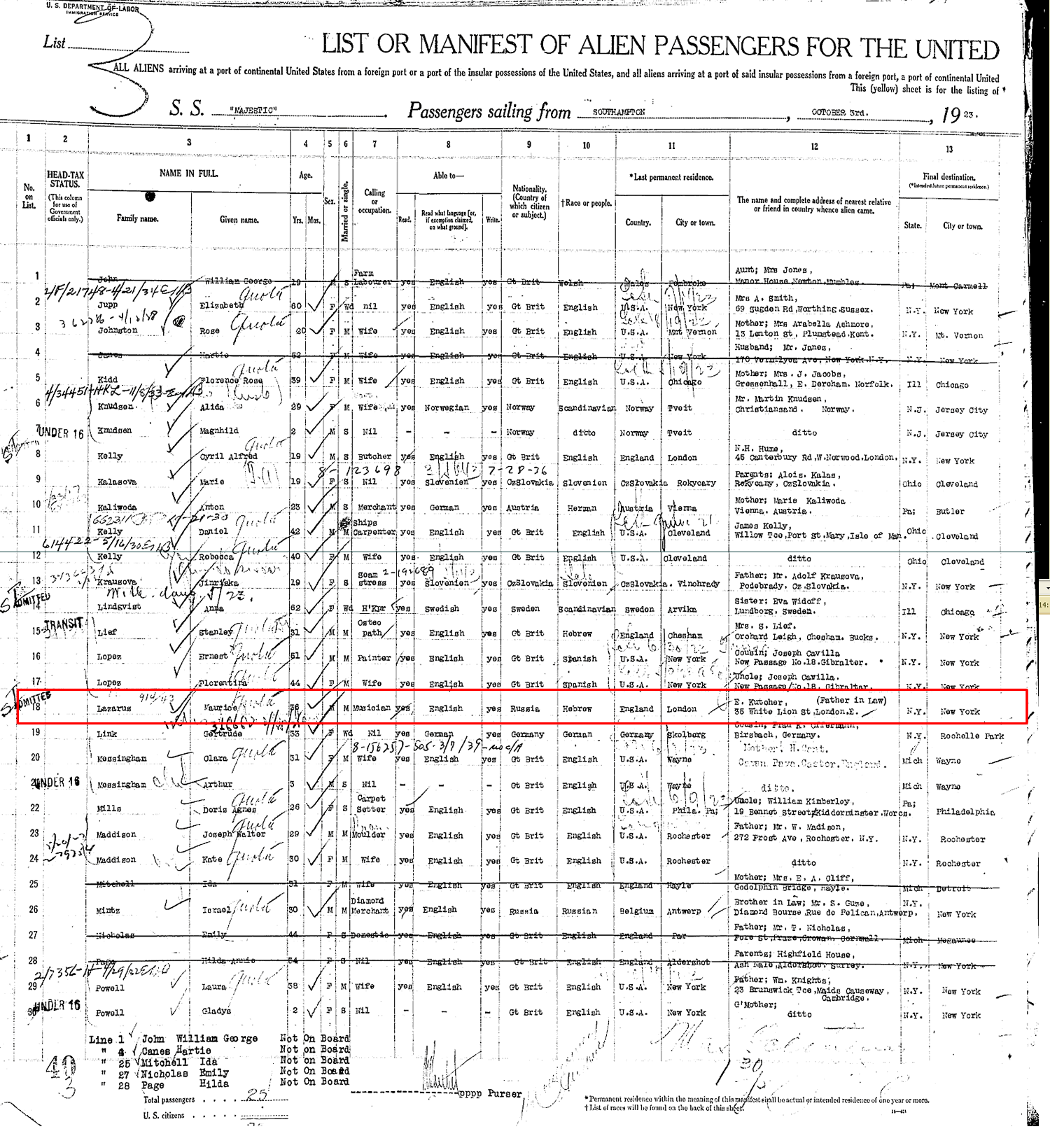 - 1923 October 3rd: Maurice emigrated to America on the Majestic.