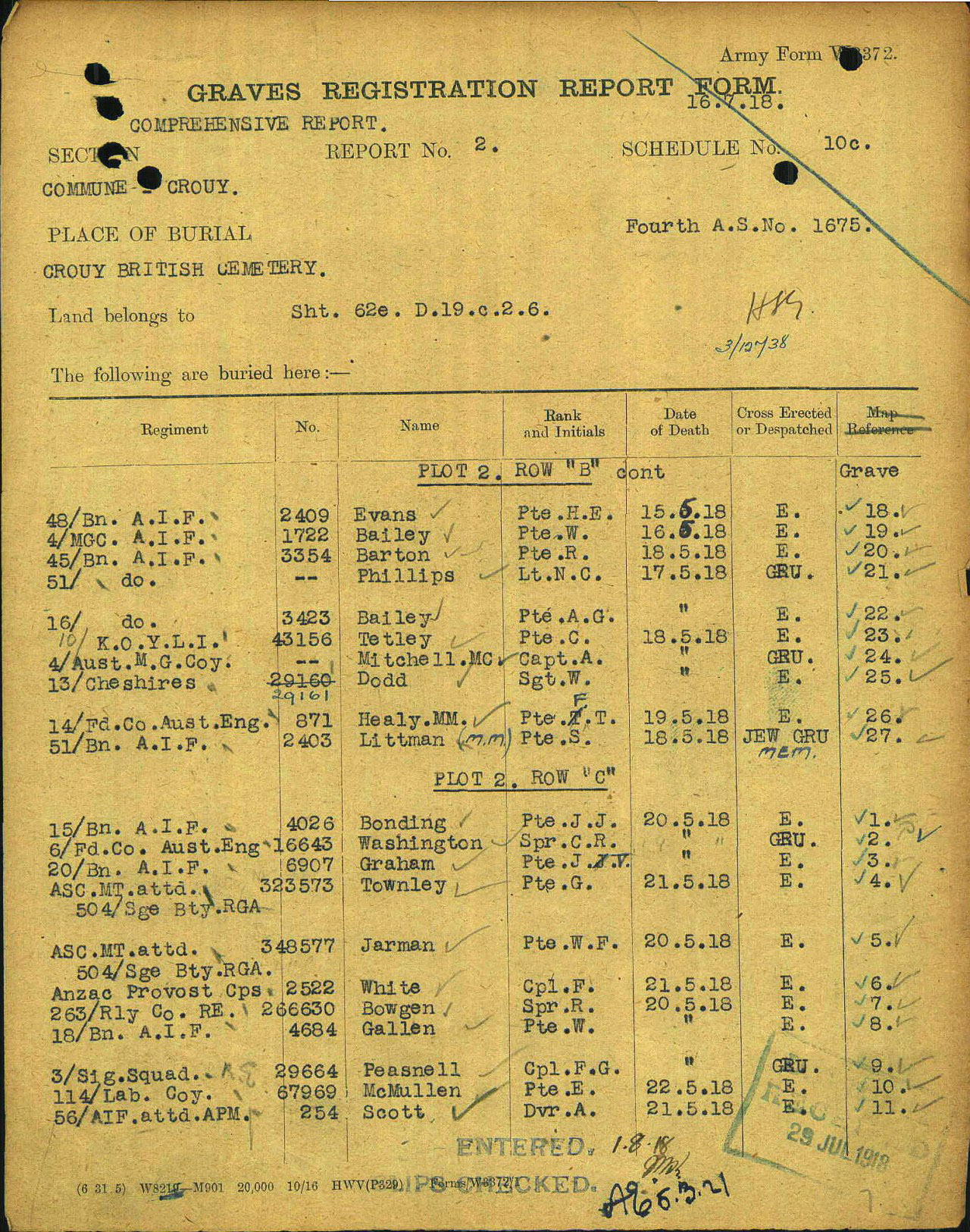 1918 Died: 18th May Solomon died serving in the 51st. Australian Infantry Battalion in World War 1. He is buried at Crouy Military Cemetery |