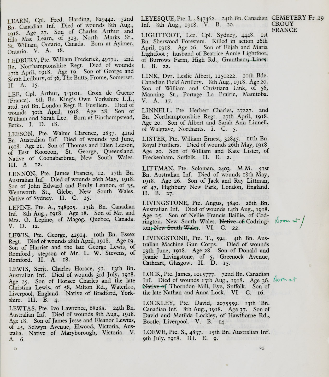 The Commomwealth War Graves Commision Website has a memorial to Soloman. Click here for a pdf copy. Crouy Cemetery (visited August 2009) |
