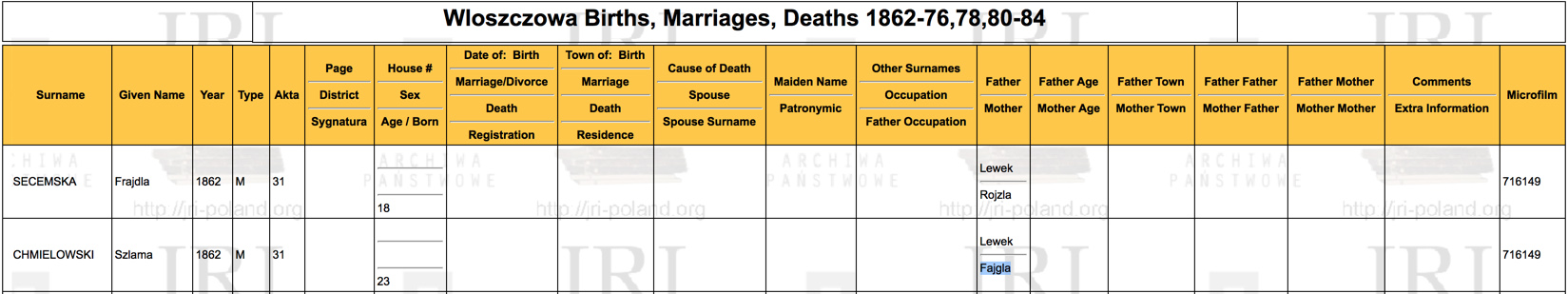 Record on JRI Poland of the marriage of Naftali's maternal grandparents |