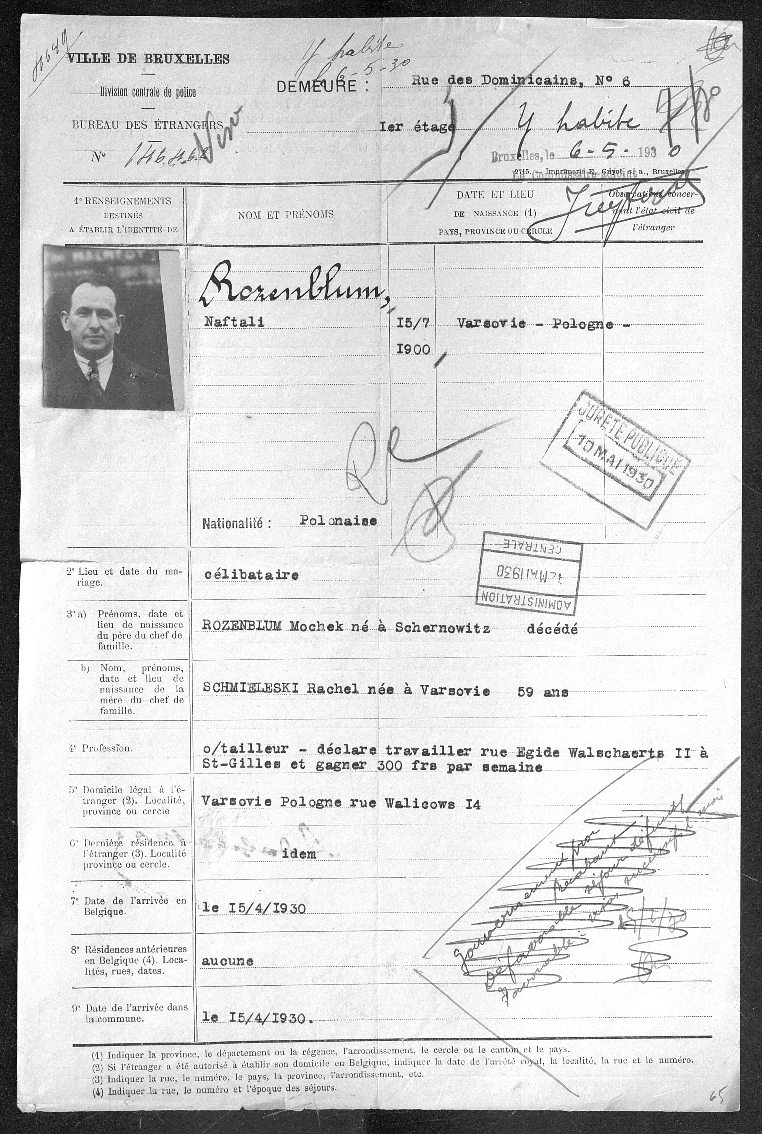 Historical Note: After the French Marshal Pétain's call for an armistice and demobilisation on 16 June the Poles had fought on until 19th June. A total of 24,352 Polish troops managed to evacuate France by the armistice deadline of 25 June. 1940 May 10 Germany invades Belgium The Rozenblum-Suknik family were living at Rue Gaucheret, 73 in Schaerbeek Brussels until at least 7th January 1941 when they registered as Jews living in Brussels.