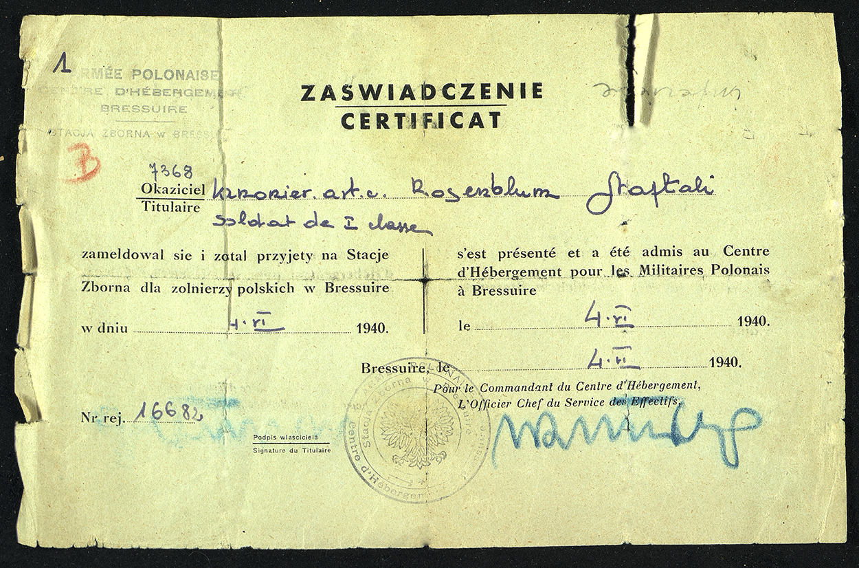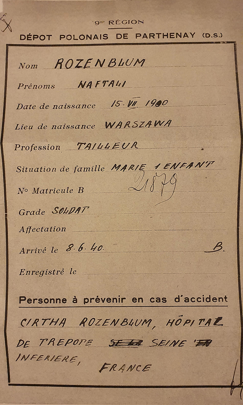 1939 - 40 At some point after the invasion of Poland (September 1939) Naftali, as a Polish citizen, was drafted into the Polish army (partially recruited from Polish army personnel who escaped from occupied Poland and émigrés volunteers), fought in the Battle of France and ended up in a hospital in Rouen.