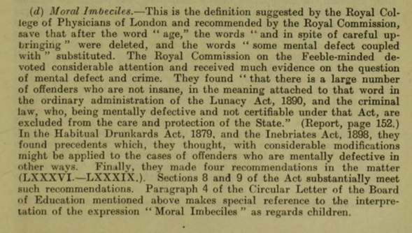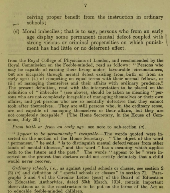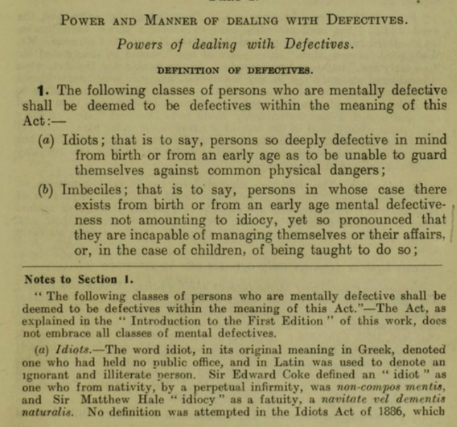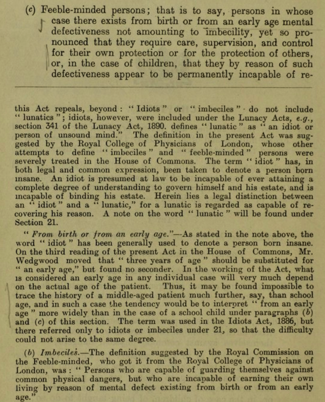 There were 4 possible classifications. from the Mental Deficiency Act 1913