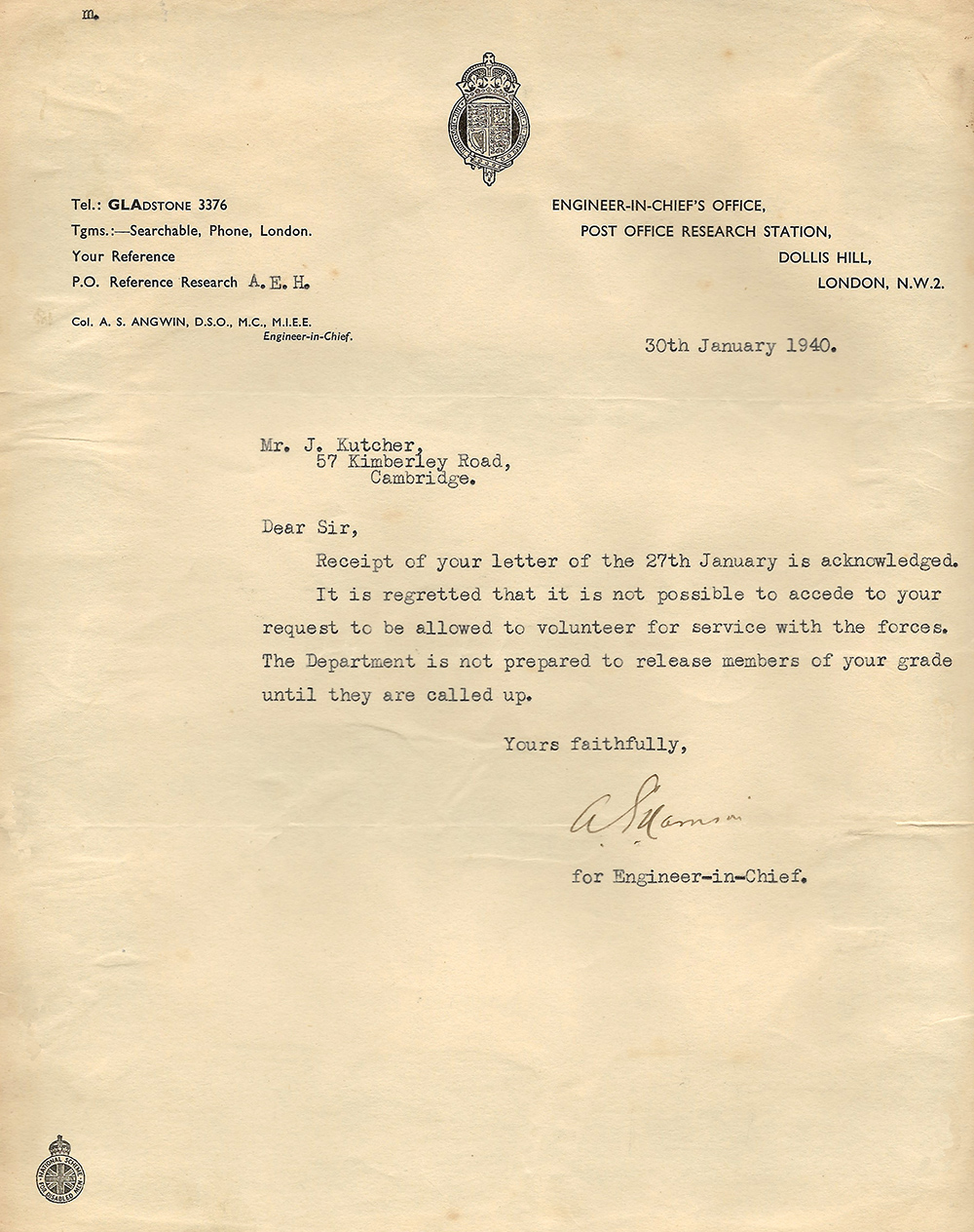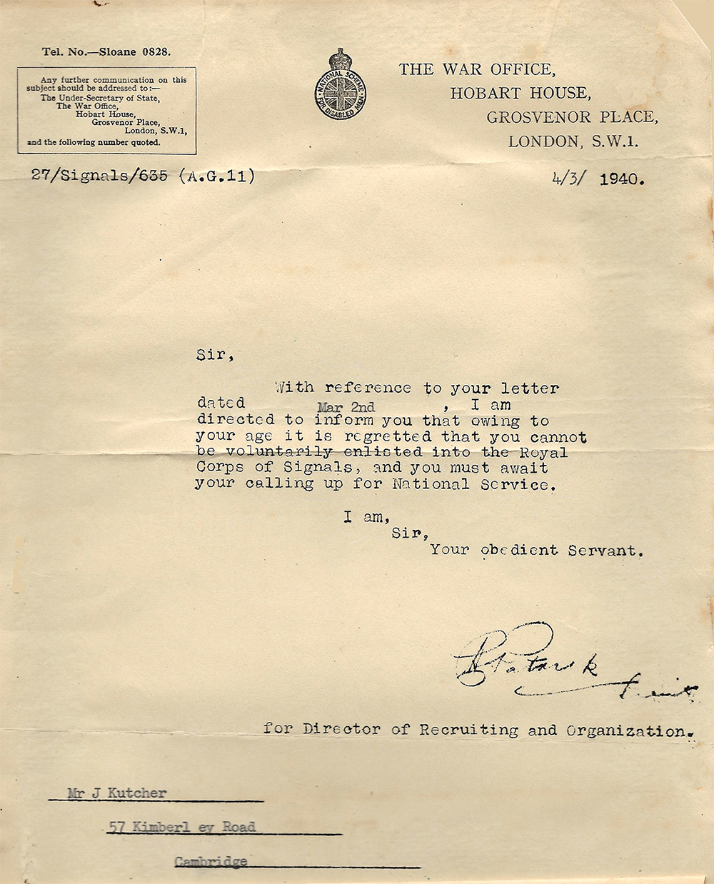 1939 to 1940 Jack tries several times to enlist in the armed forces