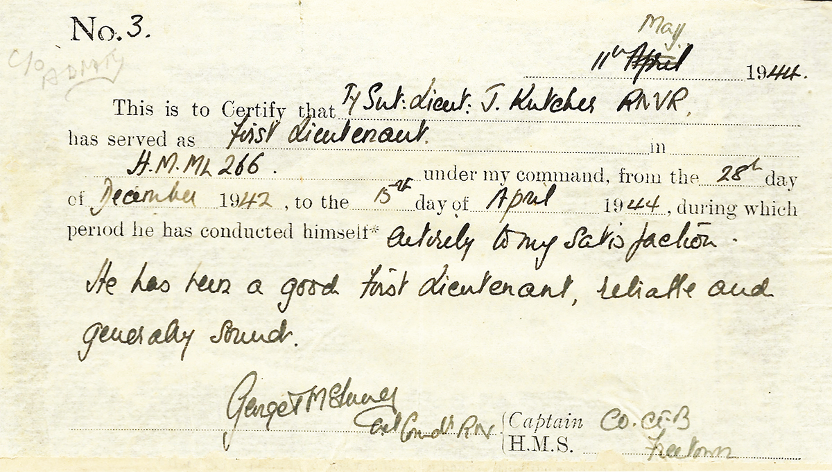 November 11: ordered to return to Takoradi, relieved by ML256 with Hudson and Blenkinsop