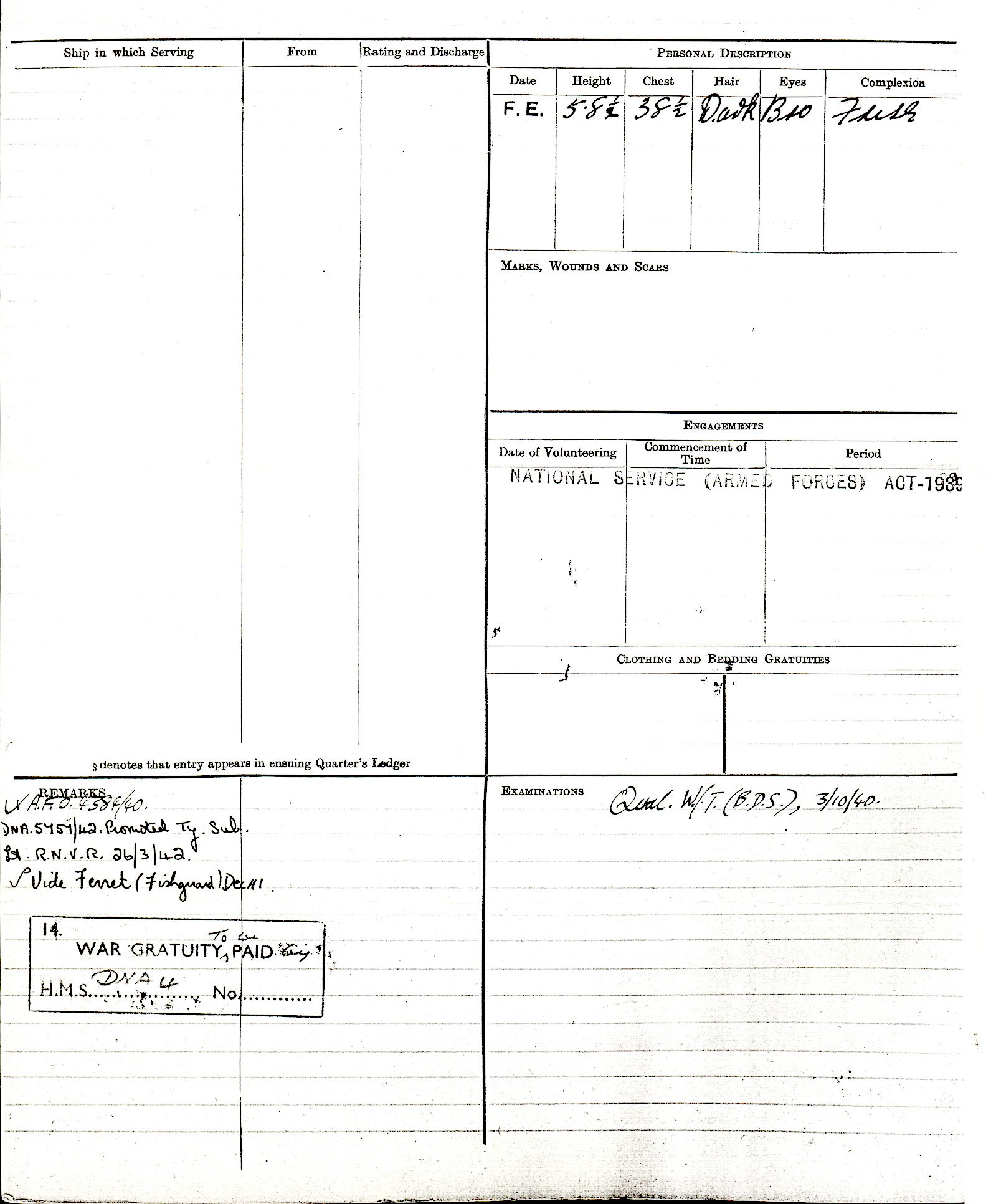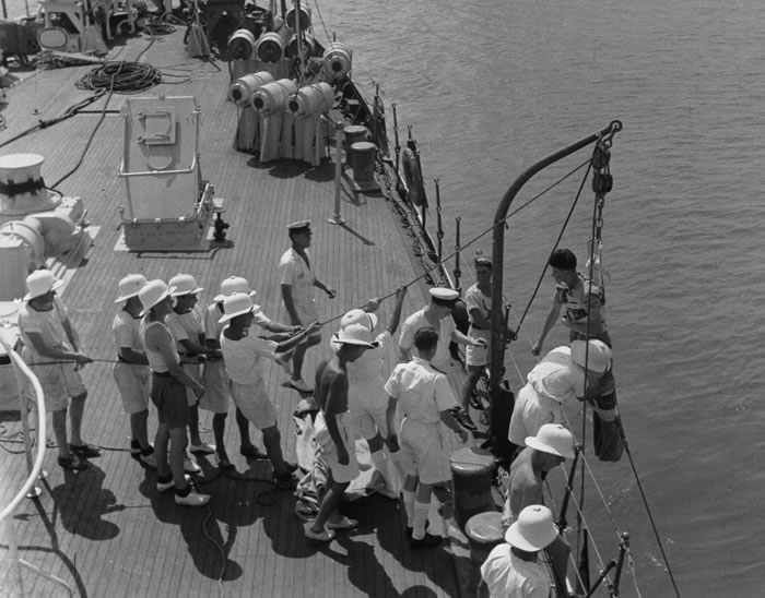 August: From Lagos - return to Takoradi to screen 2 battleships (most probably) the Revenge and Resolution whilst refuelling. (8th visit to Lagos) (Jack's Diary page 16)