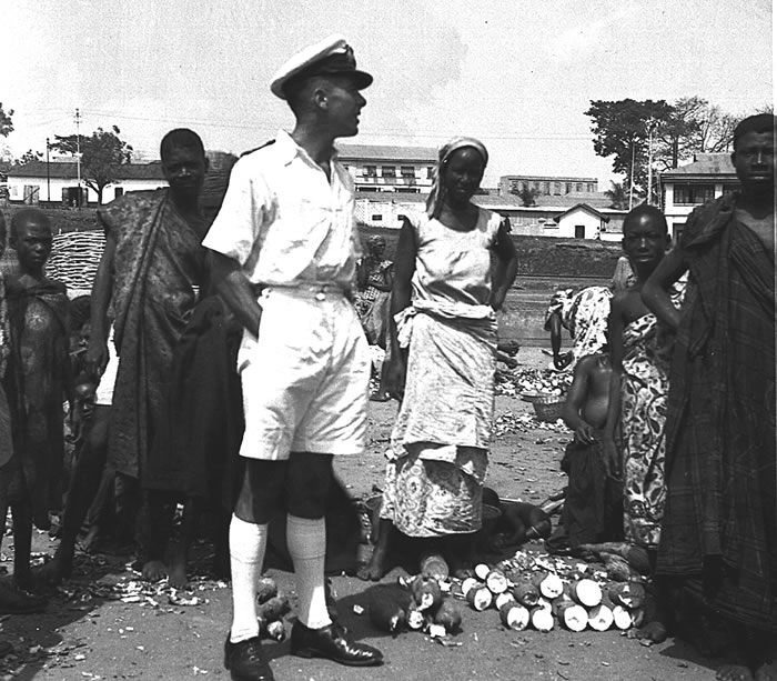 April: (possibly at the start): Sailors went on leave for 4 or 5 days in groups accompanied by an officer. They go to Kumasi, Capital of Ashanti 200 miles inland. Jack stayed with Mr. Briscoe - the Mahogany King. See Jack's pictures below.